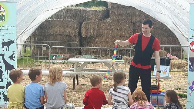 For this series of events over the summer, I was hired by Lower Drayton Farm to perform as part of their summer holiday celebrations. It included a mixed age magic show and balloon modelling. I was even booked again after that to perform two shows as part of their Halloween Entertainment.
